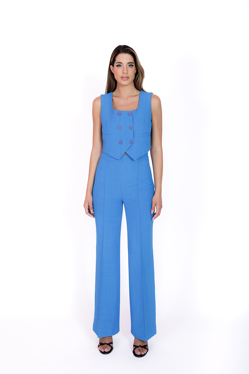 Σετ παντελόνι αμάνικο γιλέκο σε γαλάζιο
