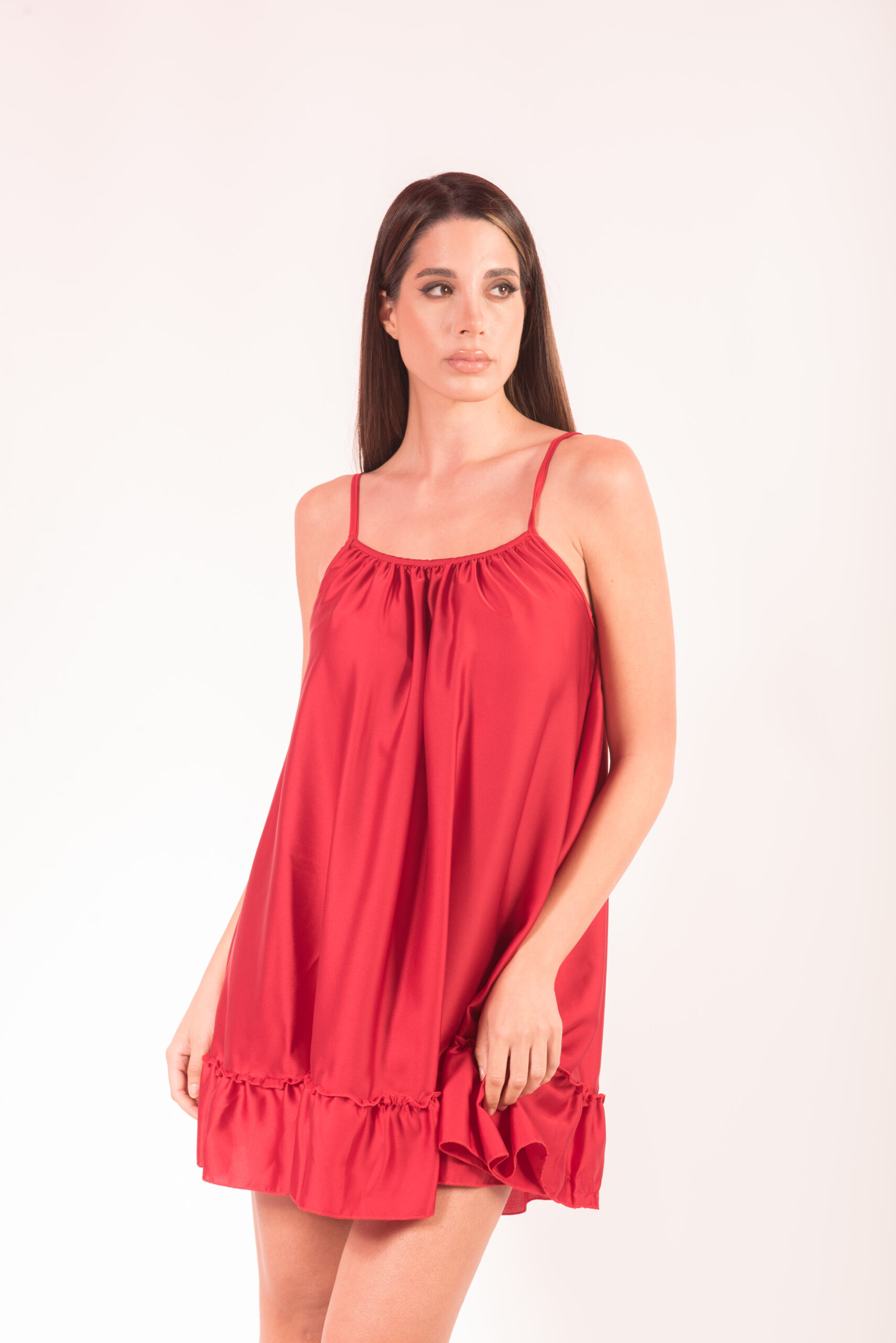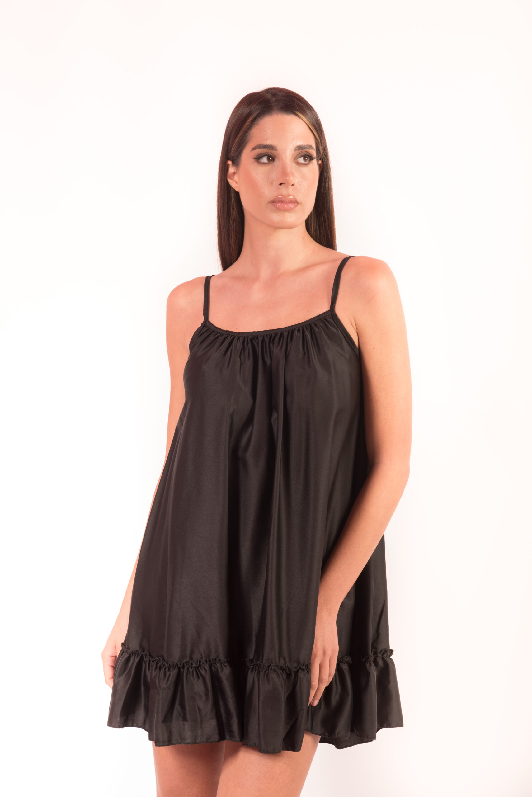Το μίνι σατέν φόρεμά μας με το φρου στο τελείωμα του που θα λατρέψεις.