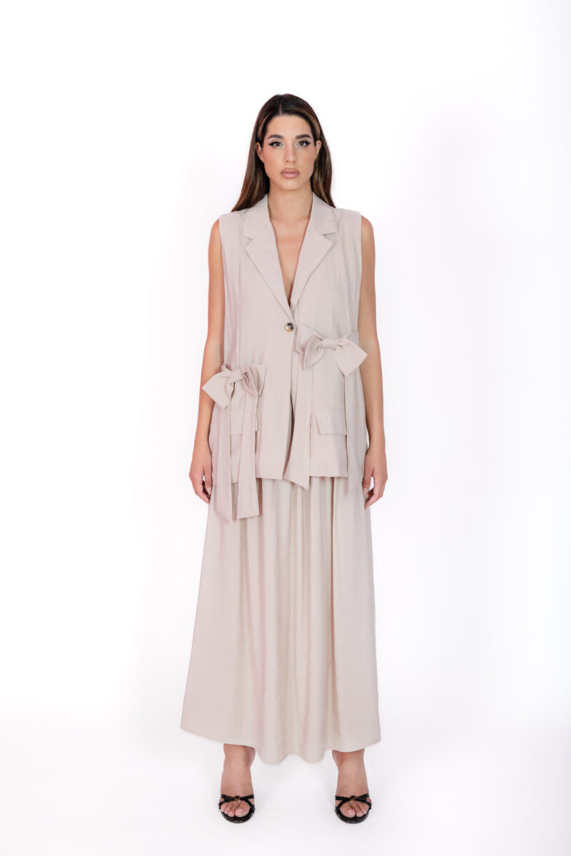 Σετ παντελόνι αμάνικο γιλέκο σε μοναδικό γαλάζιο χρώμα. Το τέλειο ύφασμά του το κάνει ένα μοναδικό κομμάτι για την ντουλάπα σου. Φόρεσέ το απογευματινές και βραδινές […]