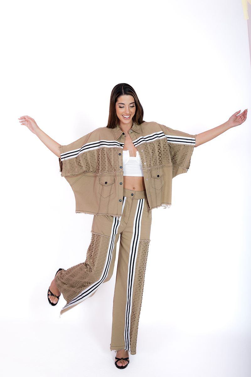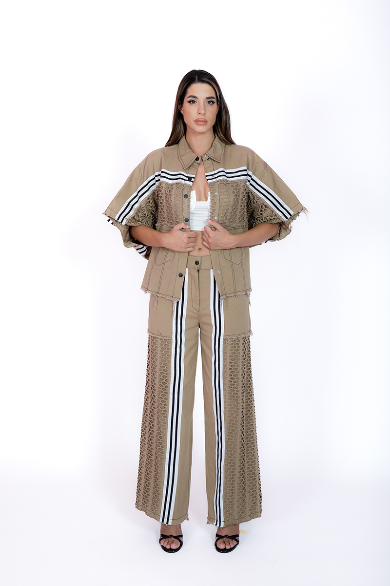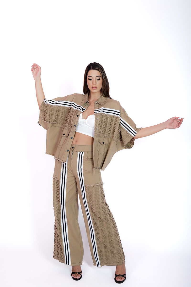 Σετ παντελόνι πουκάμισο σε ιδιαίτερο σχέδιο. Φαρδύ παντελόνι με ρίγες σε σχέδιο τόσο κάτω όσο και πάνω στο πουκάμισο. Το φοράς είτε ανοιχτό με τοπάκι από […]