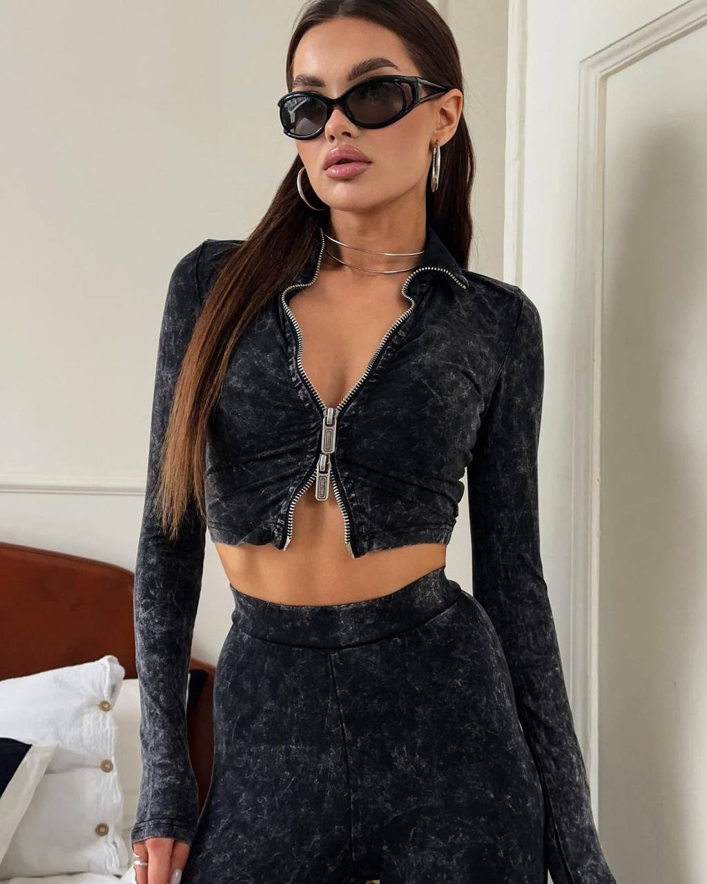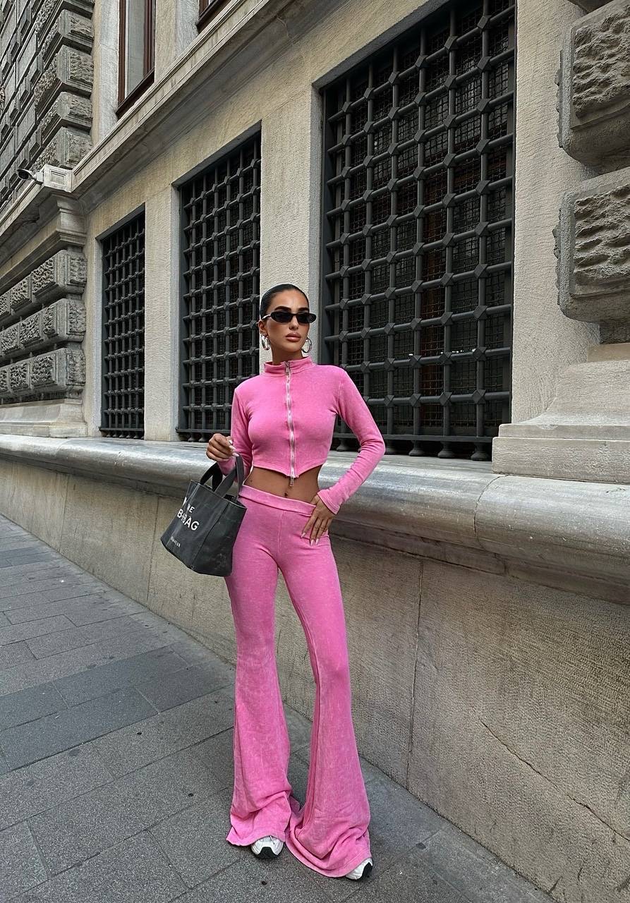 Σουέτ φόρμα σε ροζ ανοιχτό και μαύρο χρώμα με τελείωμα σε στιλ καμπάνα. Μοναδική εφαρμογή που αγκαλιάζει και αναδεικνύει το κορμί κάθε γυναίκας. Τοπ με φερμουάρ […]
